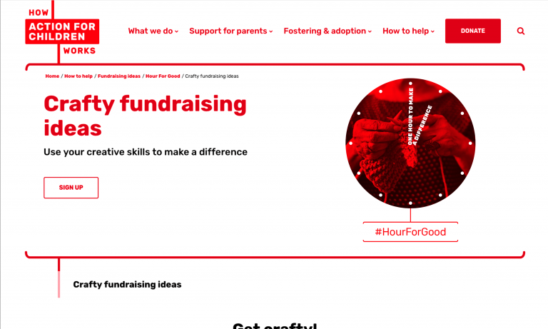 An hour for good for Action for Children, website sample pages.