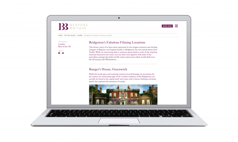 Some projects naturally lead to others — and this was one of those lovely occasions. After our major rebrand for leading law firm Nabarro, we were delighted to be recommended by our client to her son, who was launching an exciting new travel venture: Bespoke Britain.