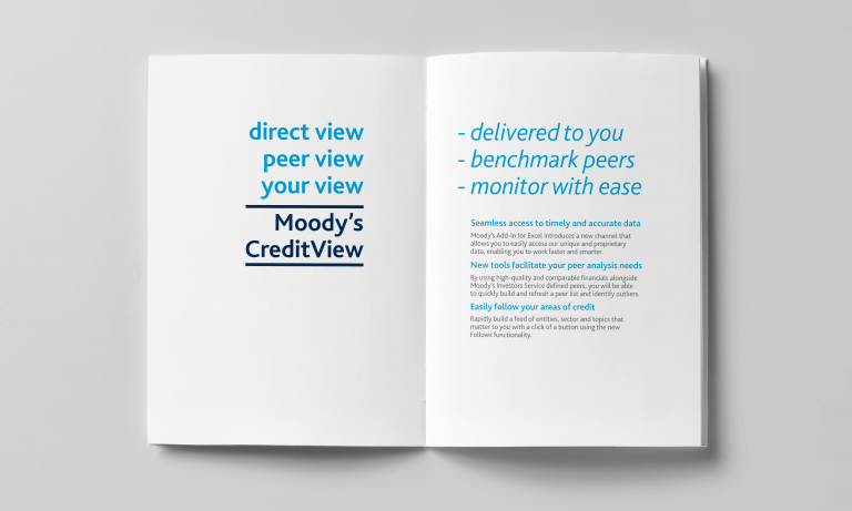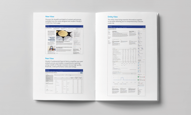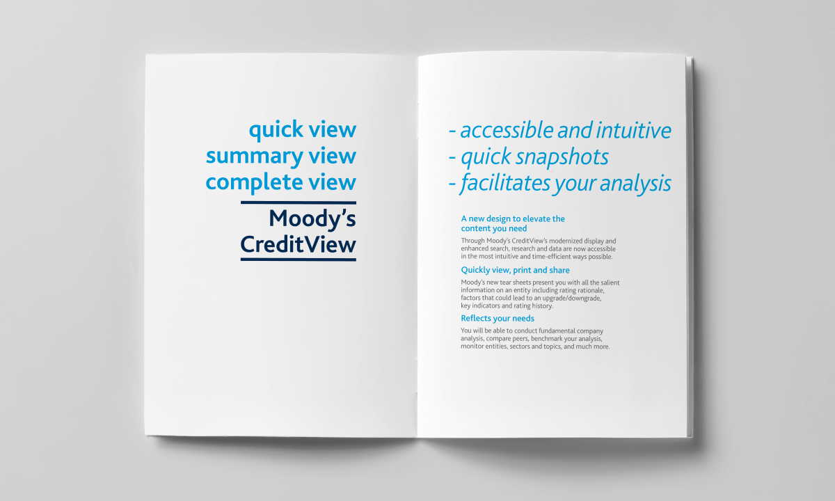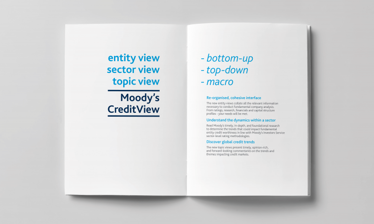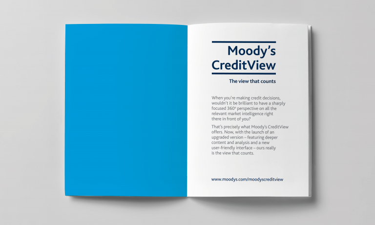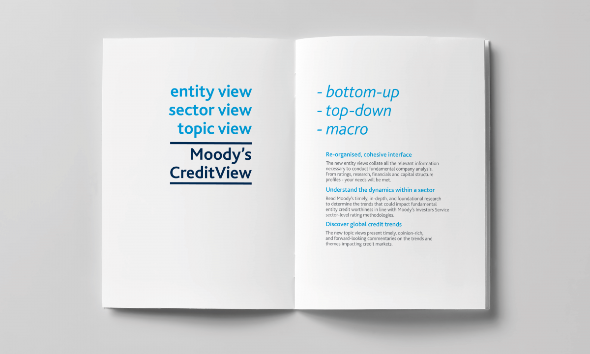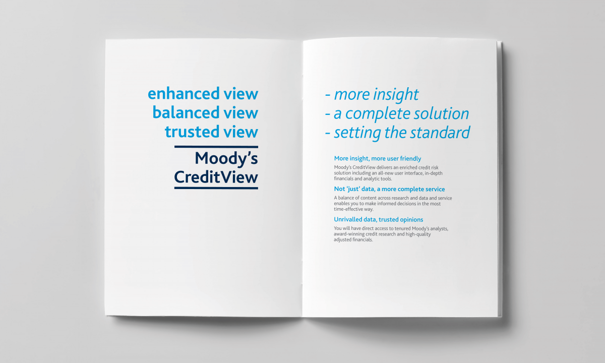 When we were approached (through recommendation for work for Nabarro LLP) to create the new branding and advertising for product launch campaign, Moody’s CreditView was (when launched some years ago) mainly a simple means of gaining online access to the company’s credit ratings. But as demand grew for greater insight, and increased depth and breadth information for better decision-making, Moody’s embarked on an ambitious three year programme to revamp and reinvent CreditView.[collapse_btn target="my_panel"]Read More…[/collapse_btn]