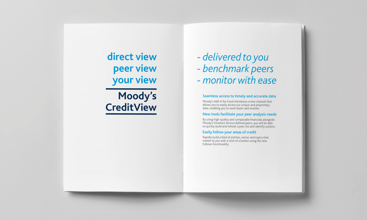 In addition, CreditView offered a massively improved user-experience, with bespoke reporting, alerts and insight, as well as seamless access to all Moody’s data through Excel – enabling clients to work far more efficiently and productively than ever before. With so much to offer, and such a bewildering range of new capabilities, the creative challenge was to pull together all the multiple benefits of CreditView in a simple yet really compelling way.