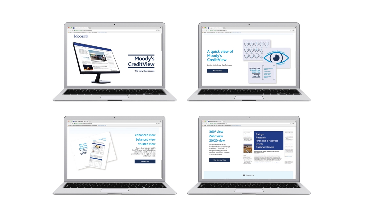 Once a simple ratings portal, CreditView had evolved into Moody’s most comprehensive insight tool — offering users a 360° view of markets, data, analysis and access to world-class Moody’s experts. Our challenge: to brand and communicate this transformation clearly, elevating CreditView above competing platforms and driving client engagement.