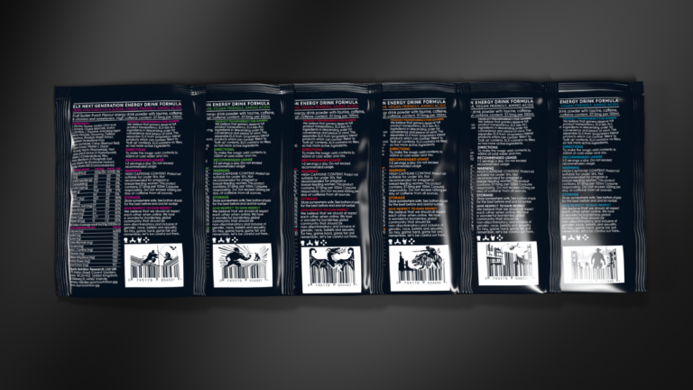 ELX energy drink and IGF In game Food packaging.
