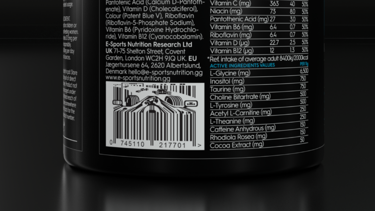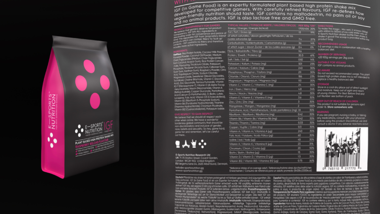 At the heart of this was a no compromise approach to player health / wellbeing, gaming performance, advanced flavour systems, product transparency, absolutely no product fillers, value for money and inclusivity i.e vegan friendly. In regard to vegan friendly, we suggested that ESN amplified this positive attribute and apply for the ‘gold standard’ of certification by The Vegan Society (which they duly did and secured). This certification would not only be a powerful marketing message, but also reflect ESN stance of transparency and qualification in regard product claims.