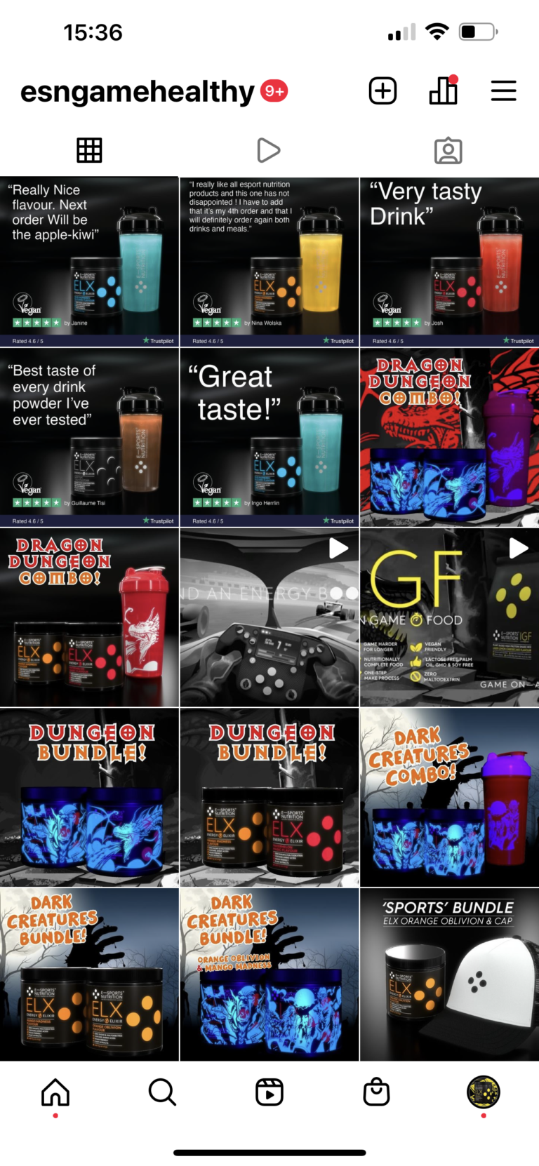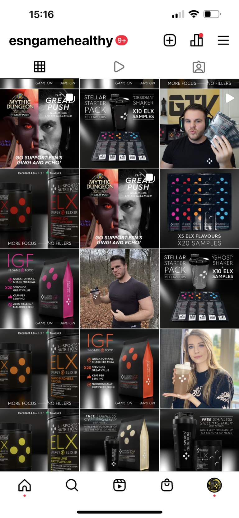 We knew we could do a lot better. We started by creating distinctive names for the two main ESN product ranges. The energy drinks became ELX, from the energy elixirs used to “power up” found in many styles of game. And the meal replacement products were brought together under the banner IGF, standing for In Game Food.