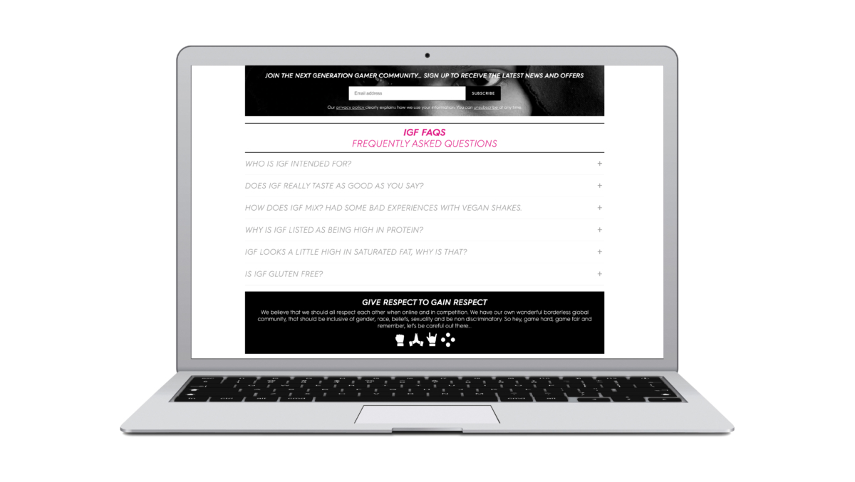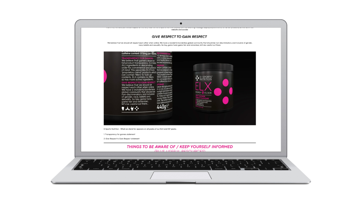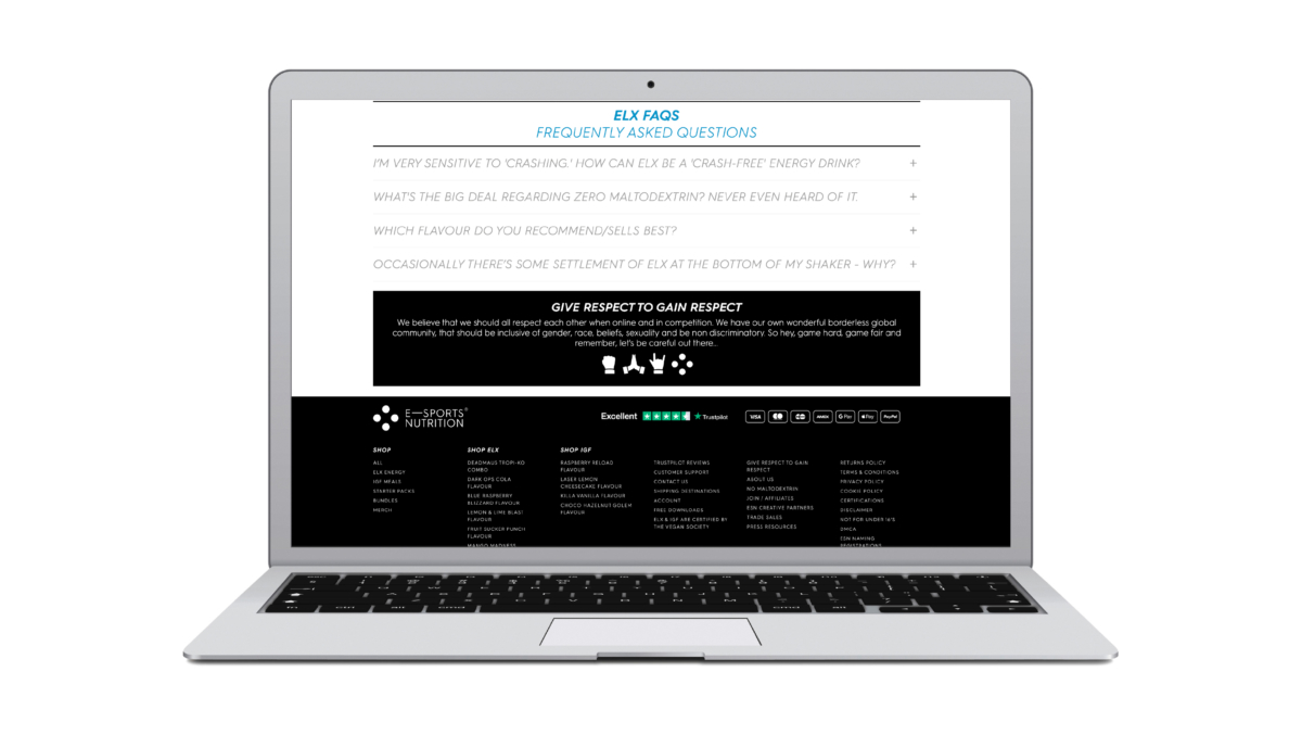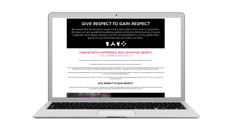 That’s why we included links to ESN’s Give respect to gain respect ethos statement on every page of the site. In this way, we not only showcased this crucial element of the brand platform, but also acted as a resource for gamers in tackling toxicity and bullying, and promoting positive attitudes and behaviour online.