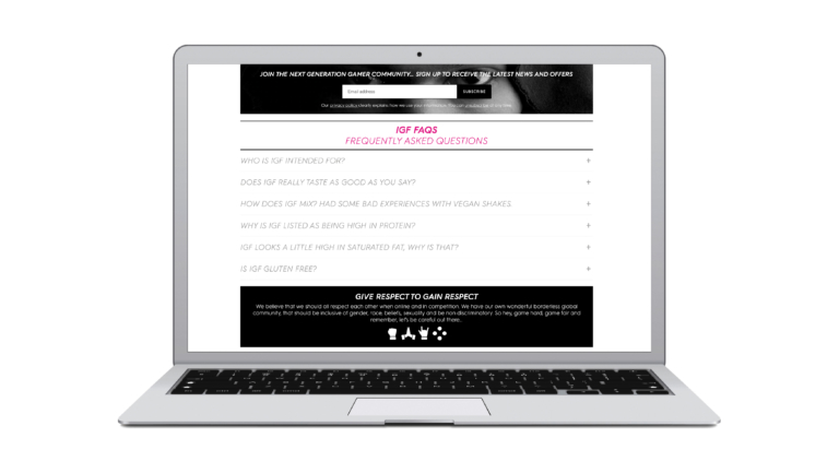 In a market dominated by visual clichés, we built something different — a clear, stylish, and credible platform that put gamers first. The site combined a sleek monochromatic aesthetic with in-depth product storytelling, featuring accordion-style content to communicate ESN’s superior formulations, certifications and nutritional transparency.