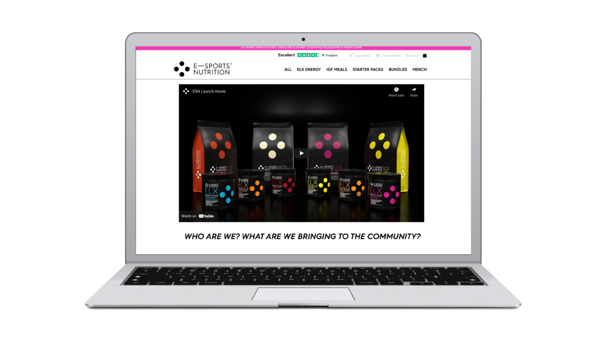 Following the creation of E-Sports Nutrition’s brand and packaging, Neon Brand Consultancy was commissioned to design and build a high-performance e-commerce website that reflected the brand’s gamer-first ethos of clarity, respect and transparency.
