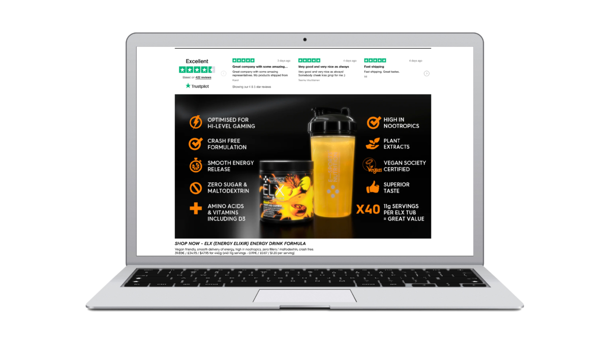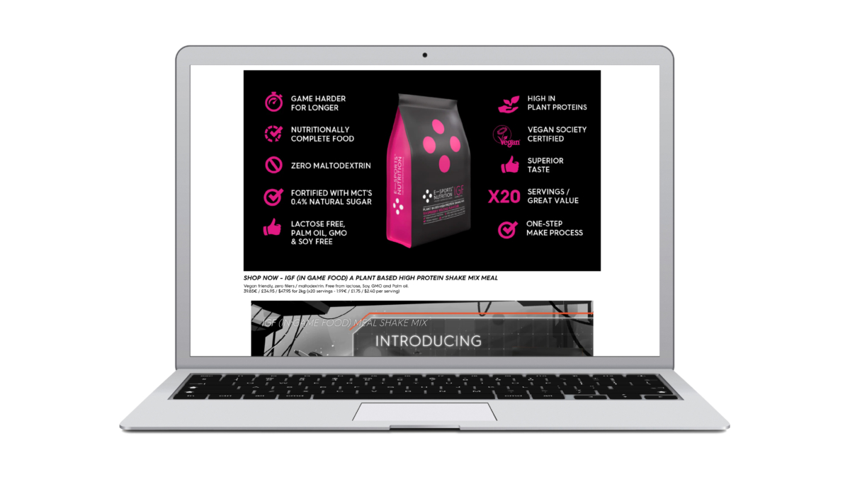 To further distinguish the brand from its competitors, we highlighted ESN’s vital fact that products contain absolutely none of the fillers – like maltodextrin, a hidden sugar in supposedly sugar-free products – used almost universally within the gaming supplement market. And we underlined that, with far more active ingredients, instead of dodgy fillers, ESN products would offer gamers much more bang for their buck.