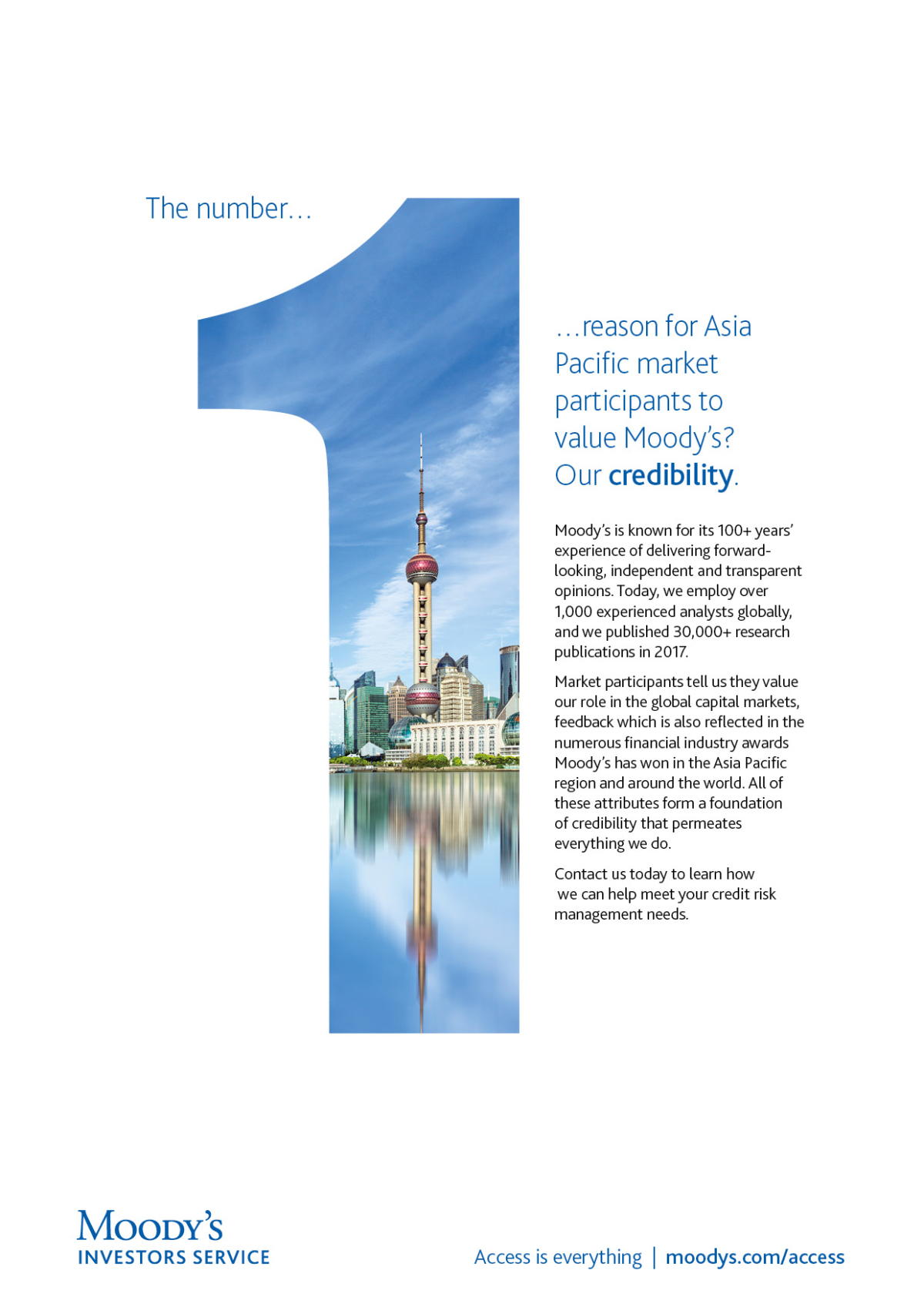 Neon Brand Consultancy created a smart, high-impact advertising campaign for Moody’s APAC division, designed to reinforce the company’s market leadership across Australia, Shanghai and Singapore — without ever having to say “No.1”.
