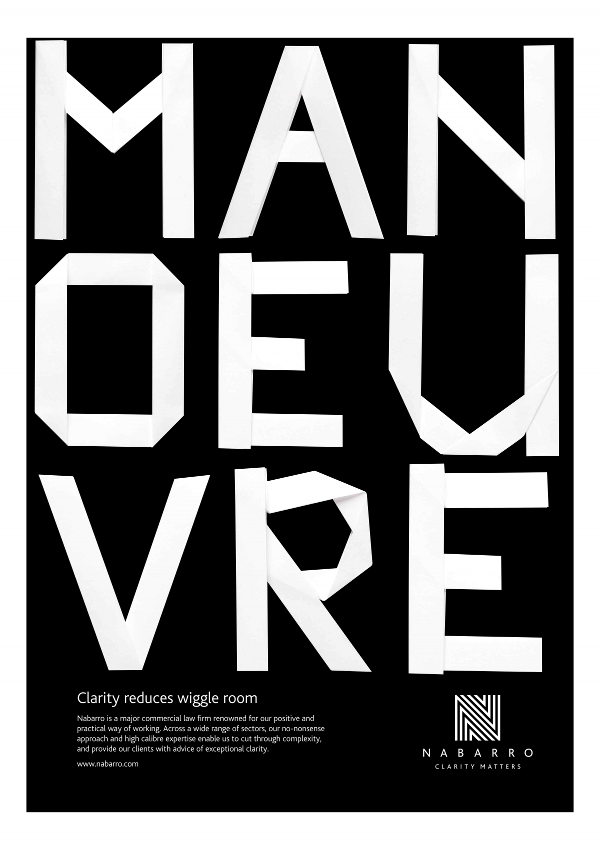 They say the solution to any creative brief is right there on the page in front of you. On this occasion, that was literally true. Long time client Nabarro LLP needed a powerful new lead image style for use across all their communications, to help make their brand even more distinctive within the legal sector. We thought long and hard about what the brand stands for – simplicity, clarity of thought, elegant economy of expression; and then we thought about the firm’s goal of always being able, when advising their clients, to sum up the essence of the issue – or the solution – on a single page.