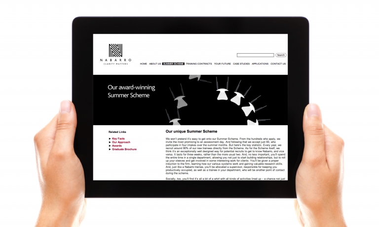 Nabarro approached Neon to create a graduate recruitment idea for their 2010/2011 graduate recruitment drive — intended to reach out to prospective candidates on campus, at Law Fairs, in the Law press and on-line.