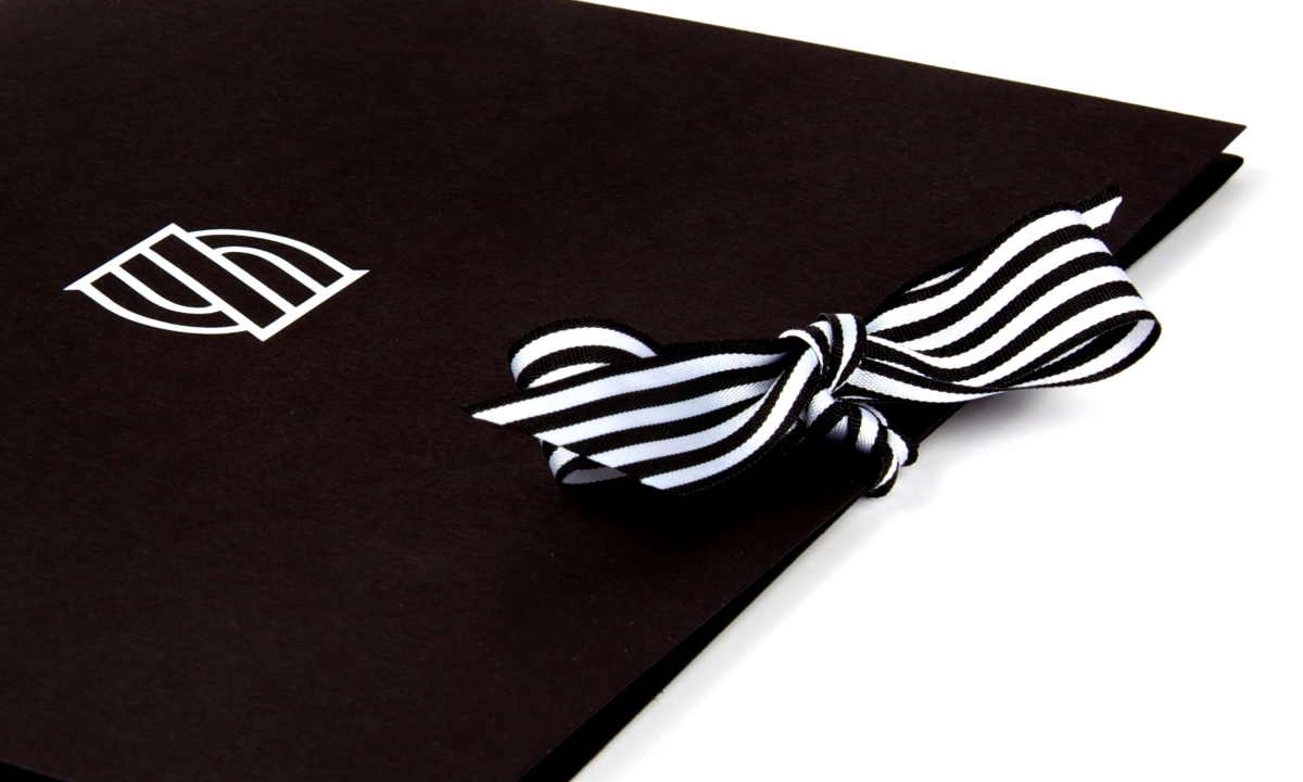 The refined logotype and monochrome palette balance strength with sophistication, while a subtle graphic stripe detail adds a contemporary signature across packaging, ribbons, tissue wraps and print materials. The result is a brand identity that feels modern yet enduring — a perfect reflection of a designer whose craft speaks for itself.