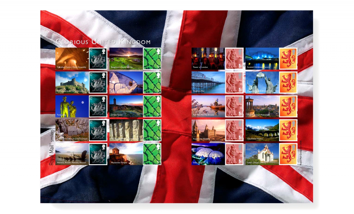 Researched and designed by Neon, the Royal Mail Glorious United Kingdom Smiler sheet was part of a set created to celebrate some of our country’s unique and fascinating places, structures and landmarks. Read More…
