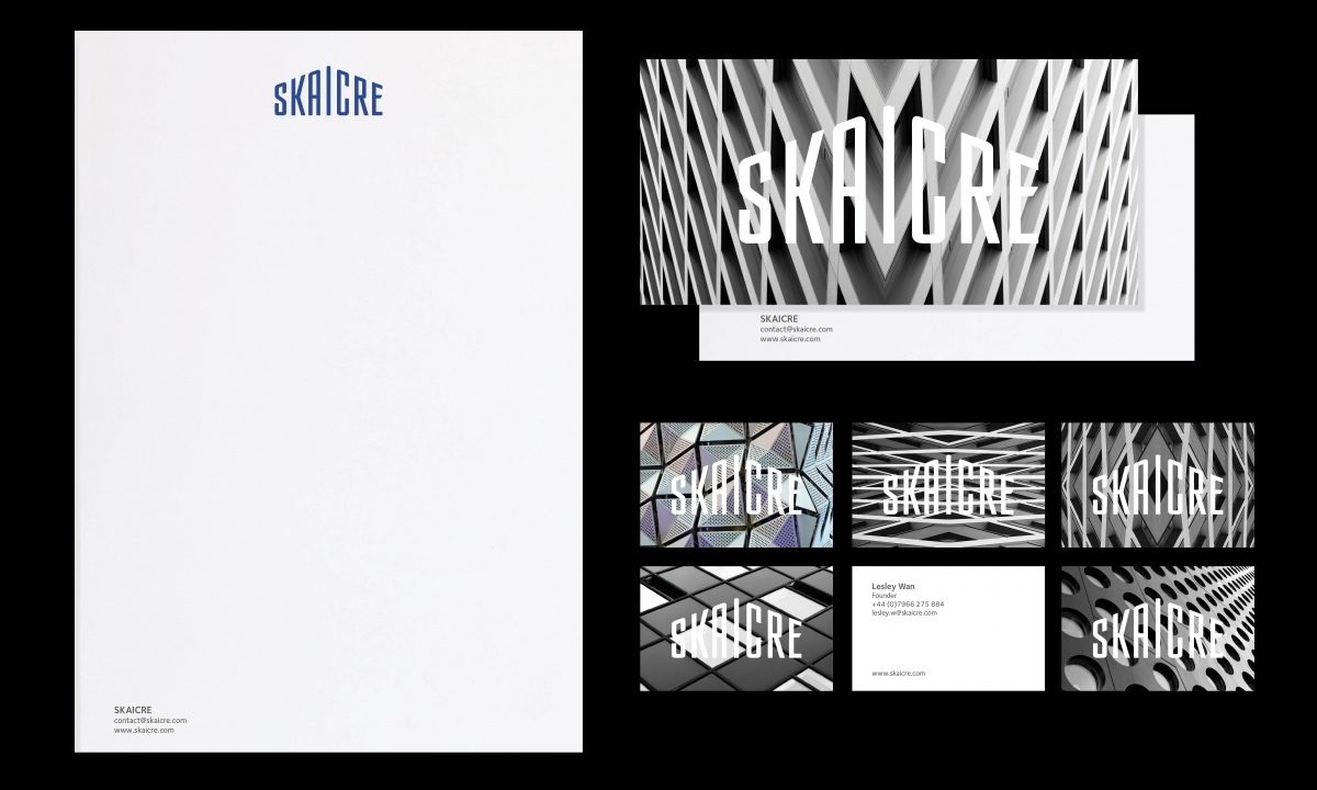 Our solution for the SKAICRE brand identity (for what was a very unusual name) was to create a skyline of typography reflecting the commercial property focus of the organisation.