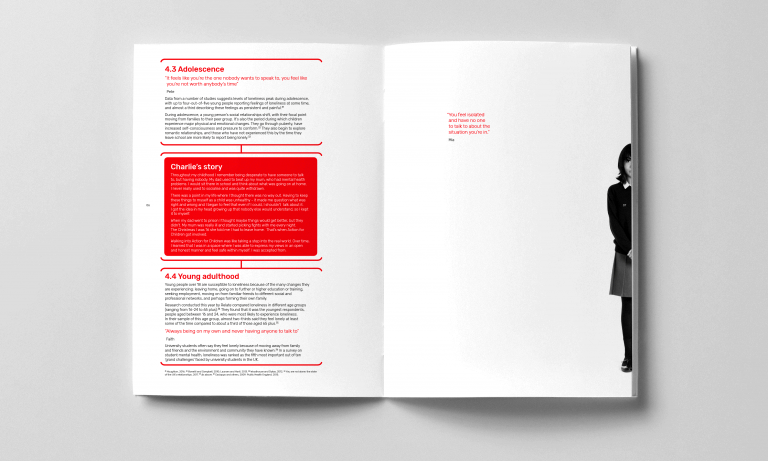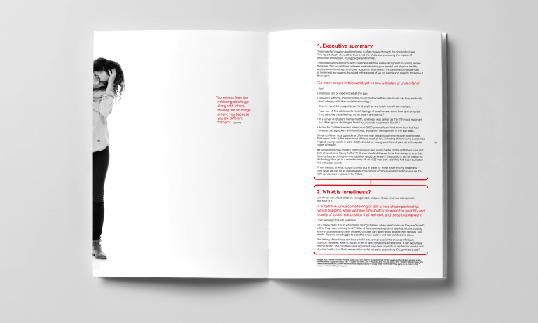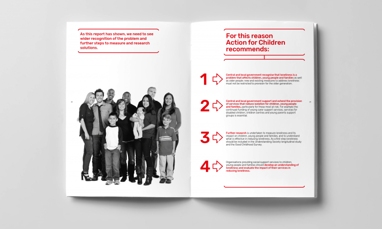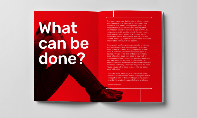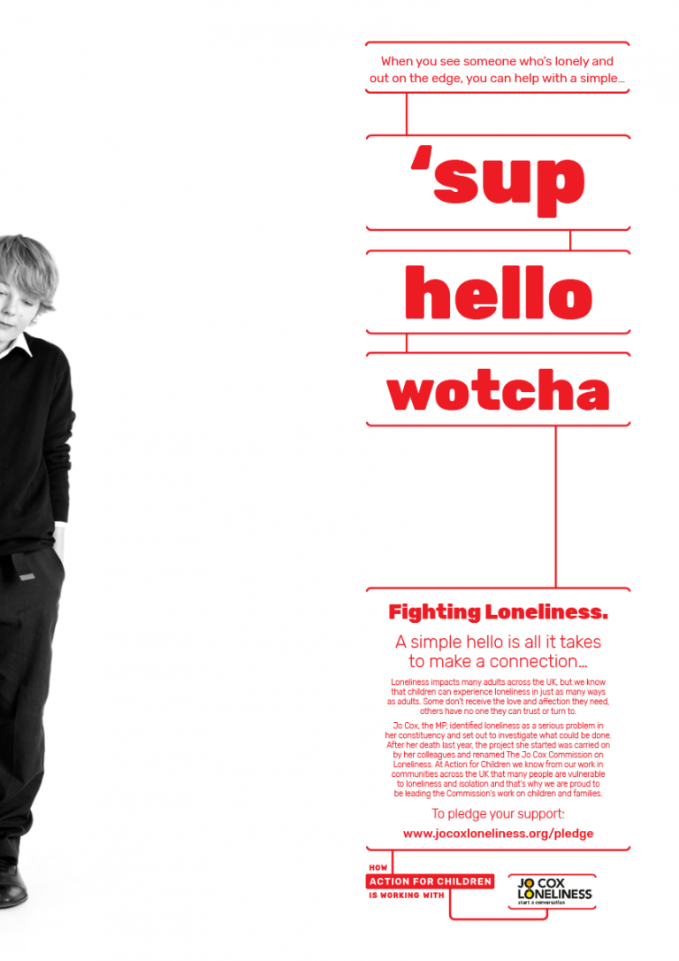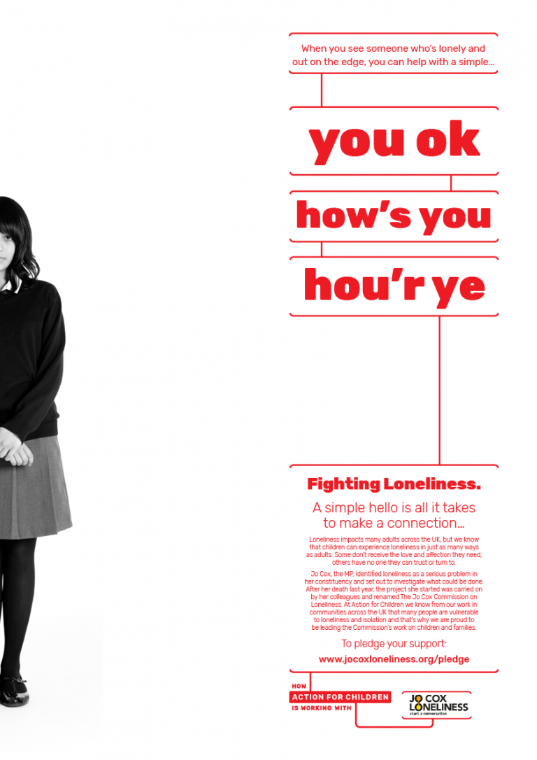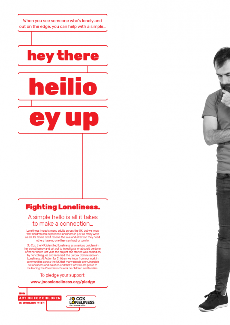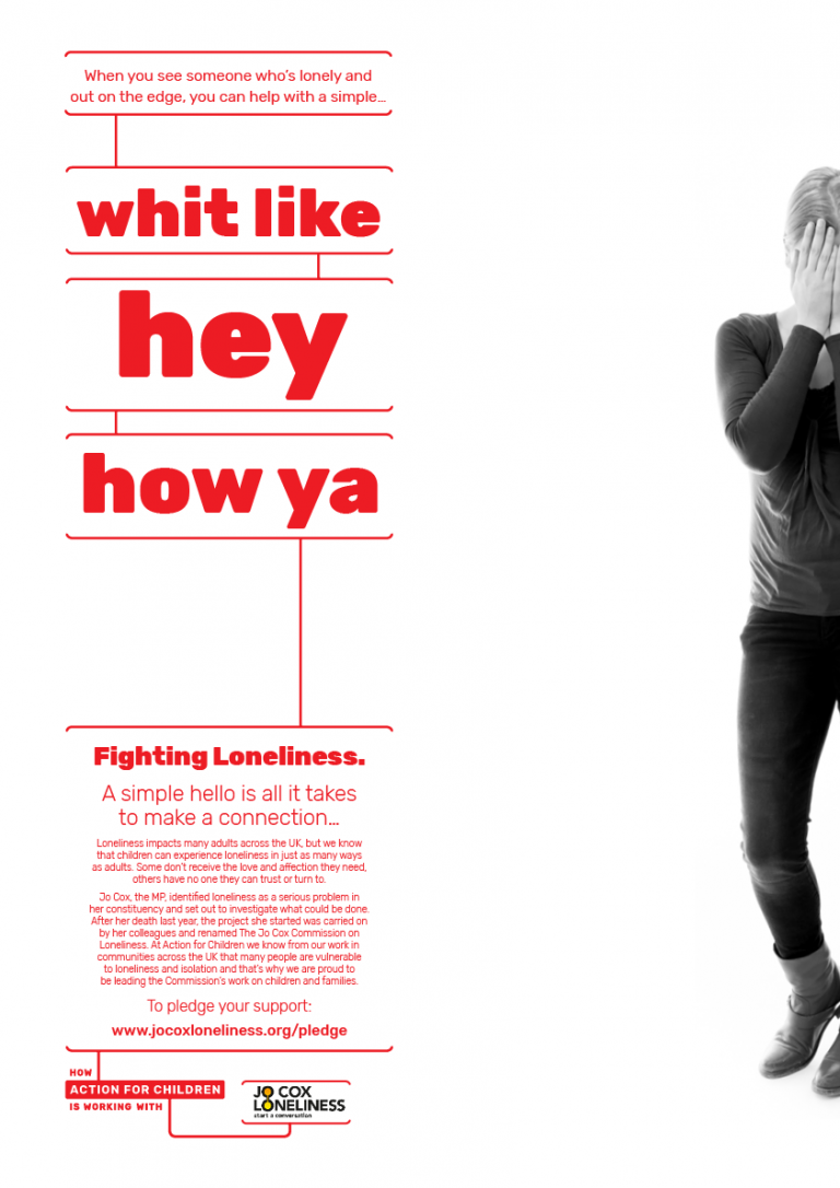 Neon’s long-time client Action for Children, knowing better than most how loneliness affects hundreds of thousands of children, parents and families throughout the UK, were quick to sign up as partners in this groundbreaking initiative. And at Neon we were thrilled when Action for Children in partnership with Jo Cox Commission on Loneliness came to us for a powerful campaign and visual style for the Commission report, and communications aimed at raising awareness of the issue.